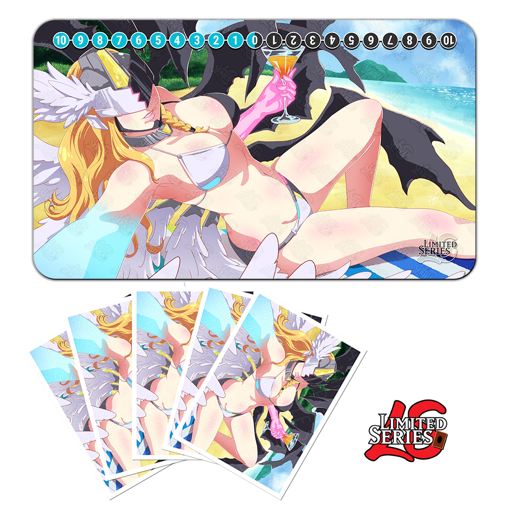 About the artist: Midnite DreamsMastemon can be seen soaking up some rays, in these Playmat / Deskmat and card sleeve designs!